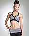 Strappy back detail, striped action and V-neck design, make this bebe sport bra a hot way to keep moving. Features breathable, lightweight stripes and thick, supportive solid trim. Center back to hem: 11.5". Read more
