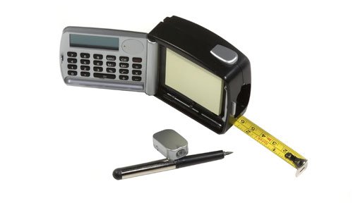 The ultimate tape measure tool on-the-go or for the kitchen drawer! Features include 10', self-retracting metal rule, full-function calculator, pencil set, self-stick note pad and removable LED flashlight just over an inch in length. Perfect for home projects!