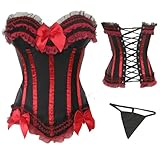 How wonderful! Pretty red & black corset with ribbons & lace ruffles. Fully boned with side metal hooks & eyelets. Breath taking and worth every penny. This beautiful soft corset is perfect for clubbing, intimate or naughty occasions.