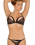 Our sheer stretch mesh underwire bra features satin framed cups that stretch around your breasts. The center section cleverly unhooks with a garter gripper to reveal the real you. Matching G-string Included. Hand wash. Air dry. Read more