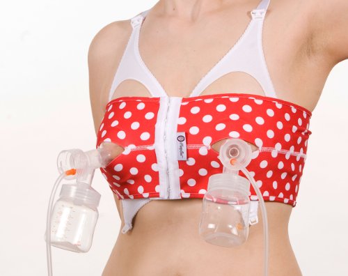 Customer Review : No more sitting and holding bottles!: I was skeptical about buying this bra, but I have to say that it works perfectly! It holds the pump tool in place for truly hands-free operation. The only improvement I would recommend is that they give an choice of velcro closures instead of hook/eye. It is a diminutive cumbersome to put on, but there might be two benefits to the hook/eye method: 1) velcro is potentially uncomfortable, and 2) the sound of velcro being removed would wake up the baby if he/she is in the same room (the pump itself tends to lull my baby back to sleep). The institute is cute too, for anything that's worth. | |