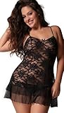 Hips and Curves Plus Size Sexy Ruffled Stretch Lace Chemise