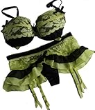 Satin and Lace Black and Wild Lime Yellow Bra & Skirt Set